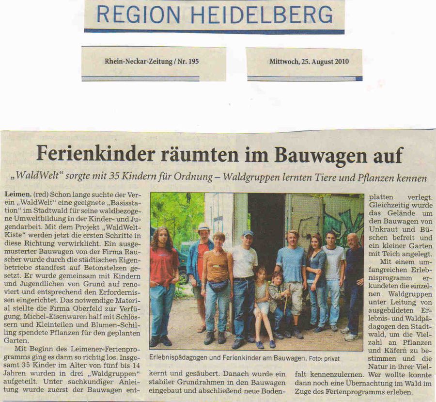 Zeitungsartikel Rhein-Neckar-Zeitung / Nr. 195 vom Mittwoch, 25. April 2010 (jpg 180 kB)