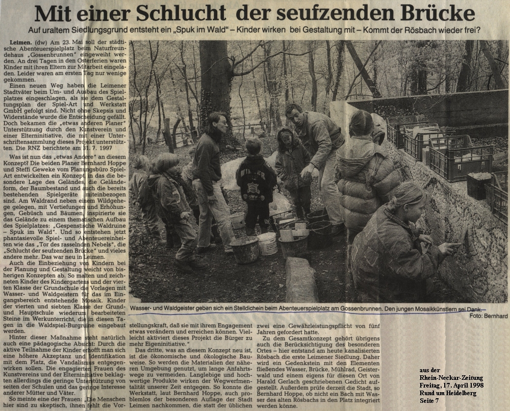 "Mit einer Schlucht der seufzenden Brücke", Zeitungsartikel aus der Rhein-Neckar-Zeitung vom 17. April 1998 (Bild, 0,72 MB)